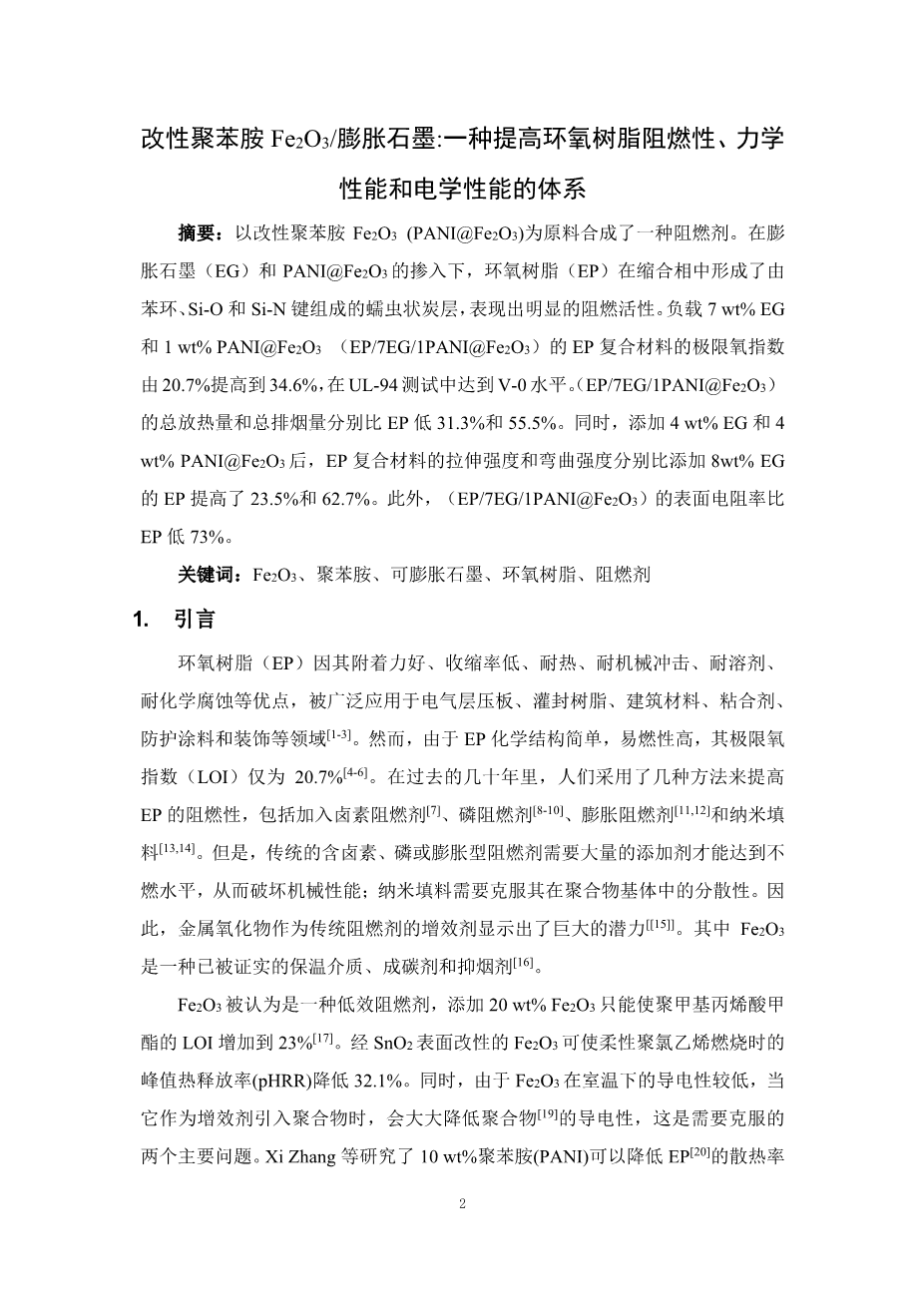 表面改性可膨胀石墨与紫外屏蔽剂协效阻燃环氧树脂研究设计外文翻译资料