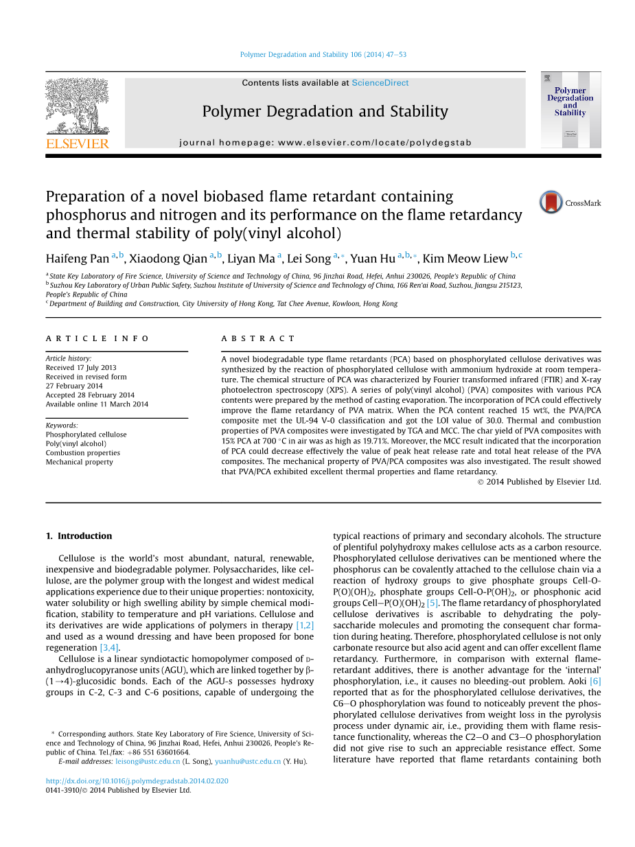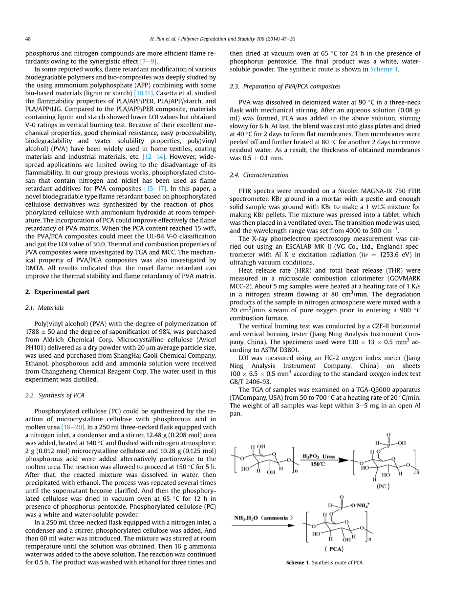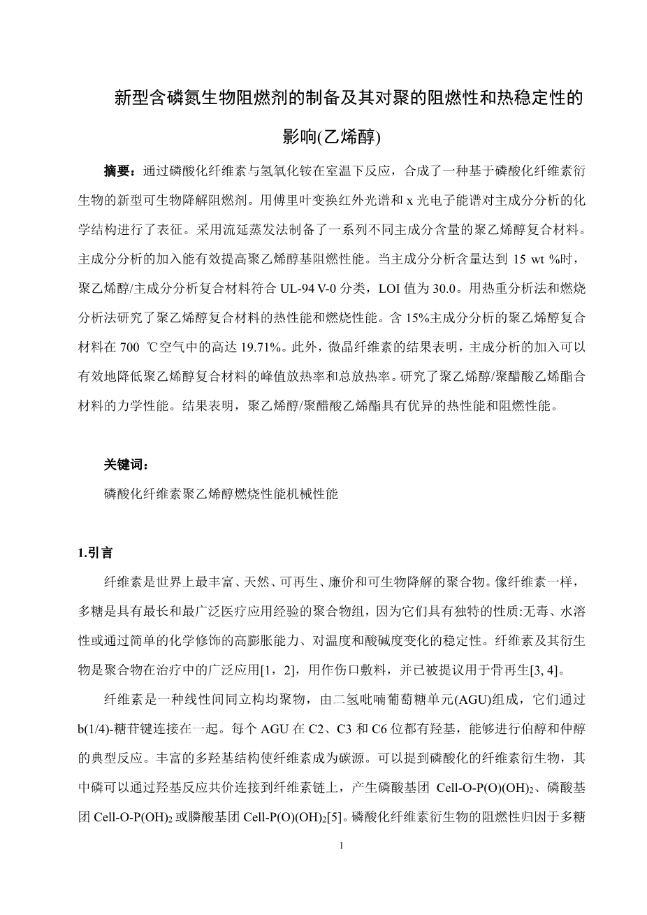 一种含磷氮的膨胀型阻燃剂对丙烯腈-丁二烯-苯乙烯的阻燃改性研究设计外文翻译资料