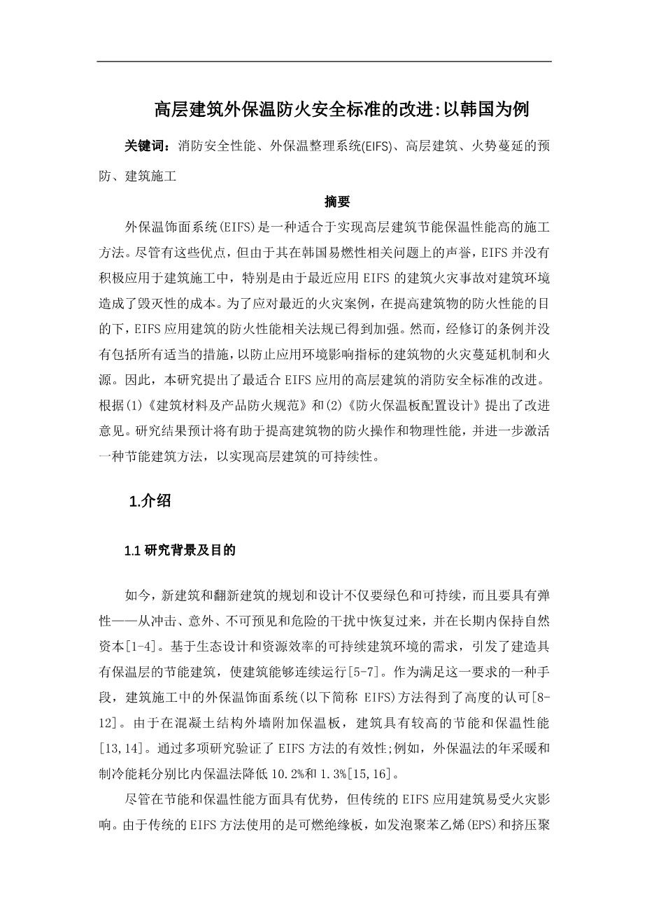 高层建筑外保温防火安全标准的改进:以韩国为例外文翻译资料