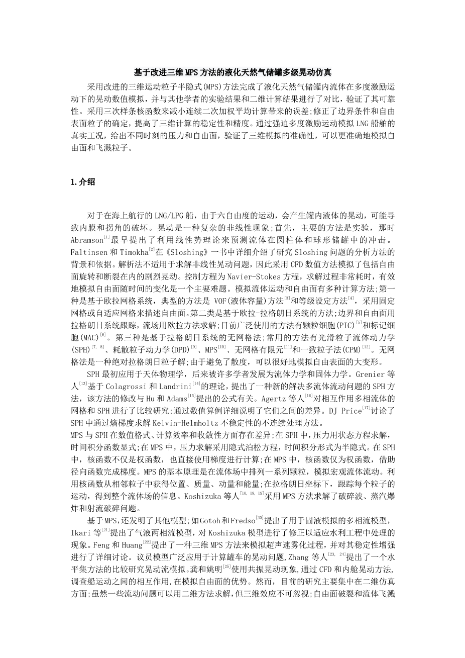 基于改进三维MPS方法的液化天然气储罐多级晃动仿真外文翻译资料