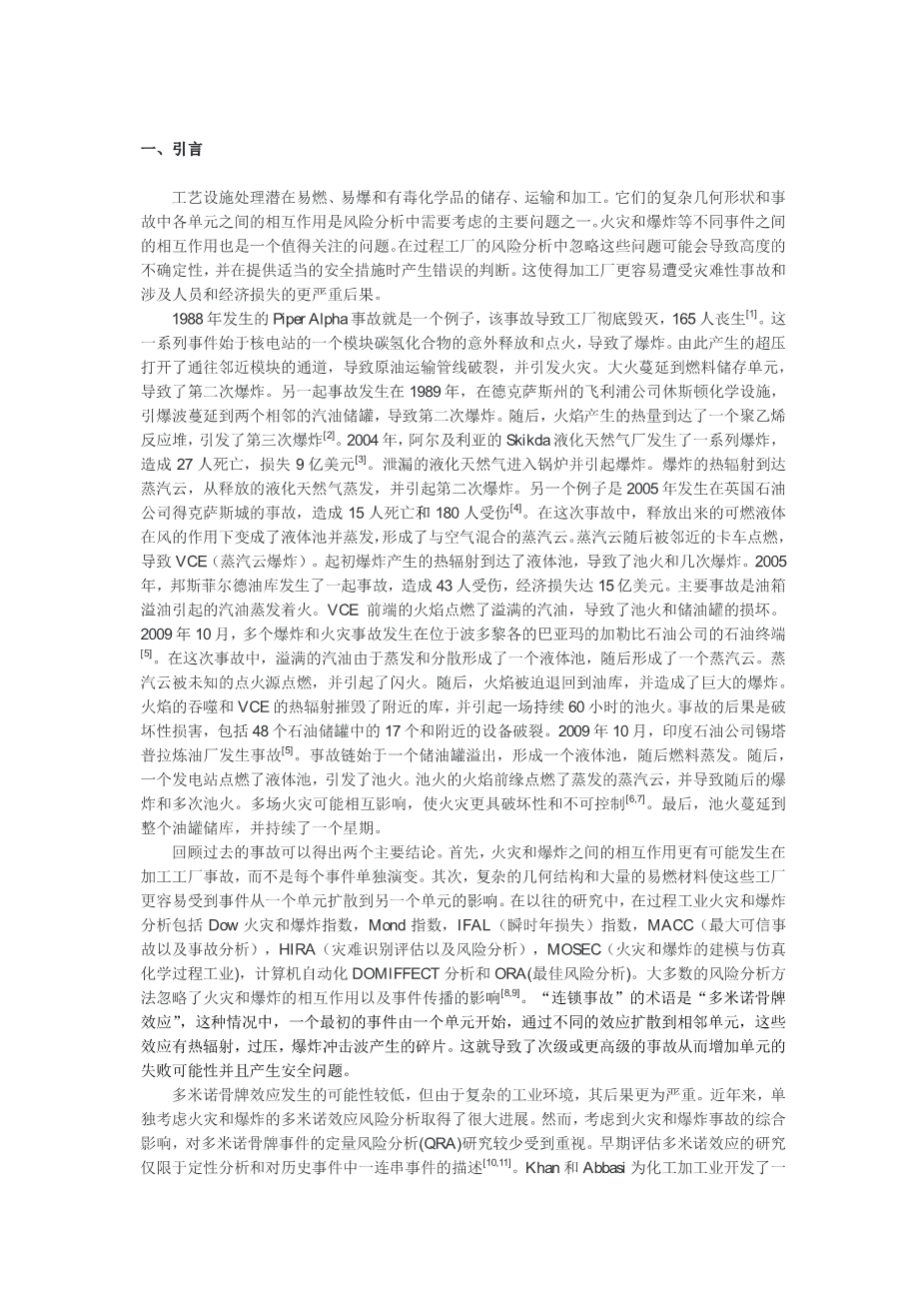 在考虑处理设备过程中不确定因素的情况下对火灾爆炸事故进行基于风险的多米诺效应分析外文翻译资料