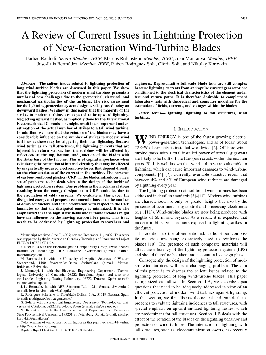 新一代风力发电机叶片防雷研究现状综述外文翻译资料