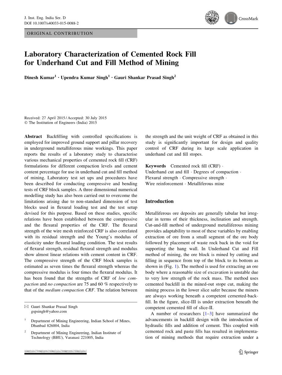 本文阐述了实验室研究的结果在大规模评估下向分层充填采矿法的各种机械性能的应用。在这项研究中已经进行了单轴抗压强度,杨氏模量,泊松比,弯曲强度,弯曲模量等各种测试。建立了一系列CRF块模型的关系即关联弯曲强度与水泥含量,抗弯强度与抗压强度,弯曲模量与弯曲强度,杨氏模量与弯曲模量和剩余抗弯强度与弯曲强度的关系。这些关系可用于设计在地下胶结充填采场不同水泥含量与压实度的胶结岩石以适应不同跨度矿脉和厚度的切片。