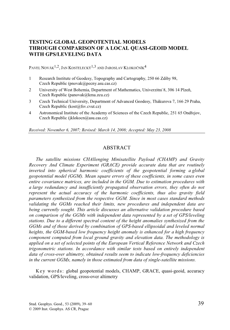 1捷克共和国测地学、地形和制图学研究所,250 66 Zdiby 98 (pnovak@pecny.asu.cas.cz)