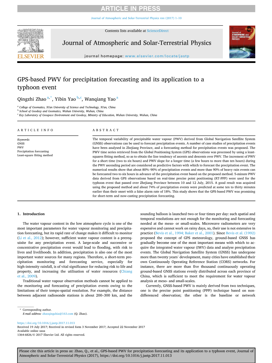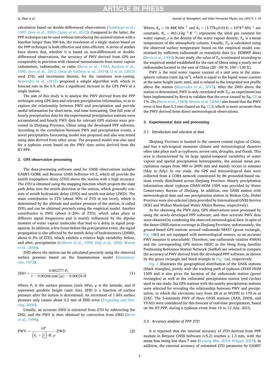 基于GPS的PWV,用于降水预报及其在台风事件中的应用外文翻译资料