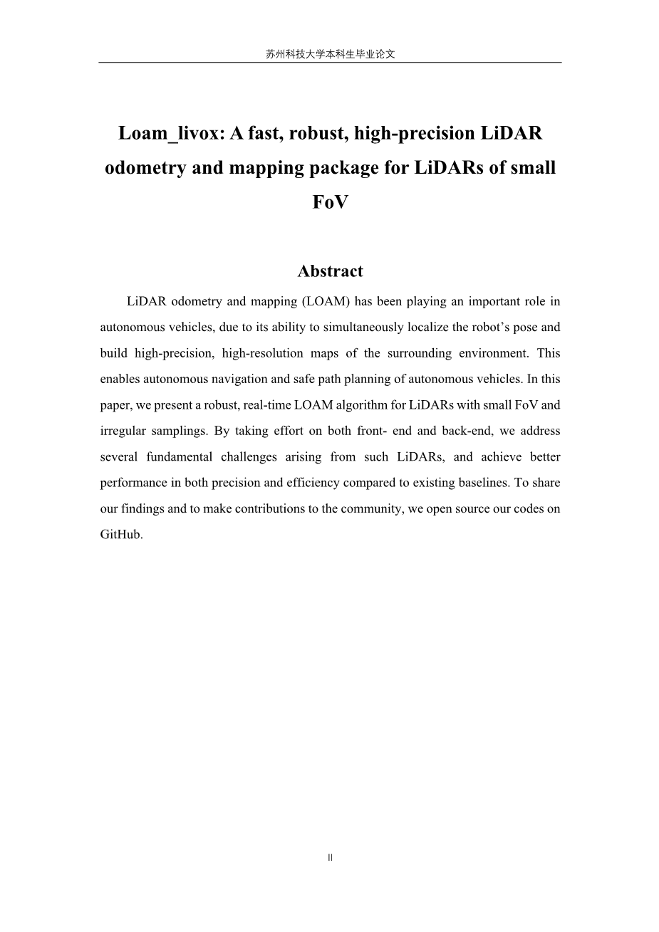 - Loam_livox:一种适用于小视场激光雷达的快速、鲁棒、高精度的激光雷达里程计和建图软件包外文翻译资料