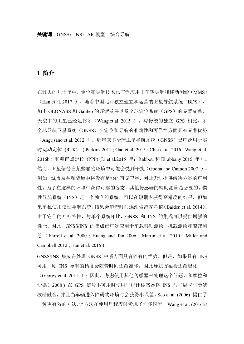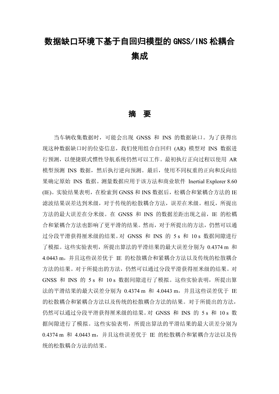 - 数据缺口环境下基于自回归模型的GNSS/INS松耦合集成外文翻译资料