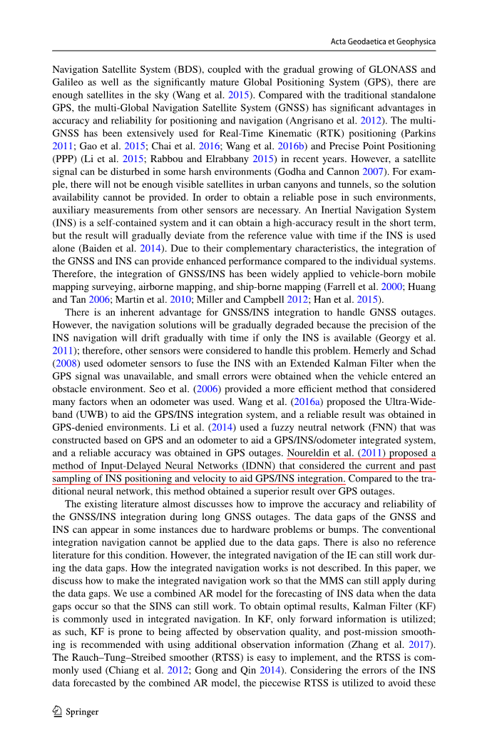 数据缺口环境下基于自回归模型的GNSS/INS松耦合集成外文翻译资料