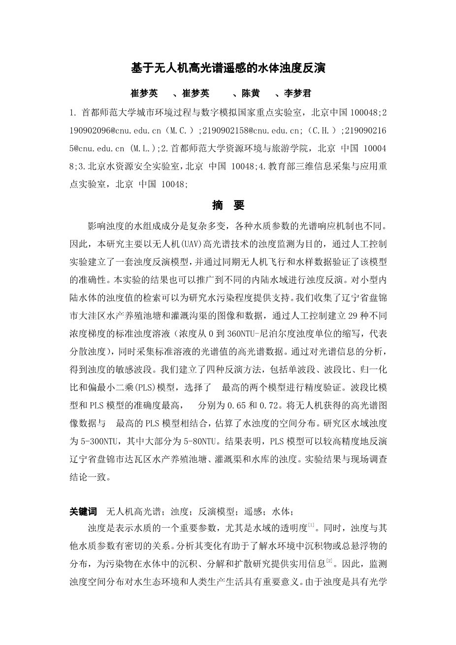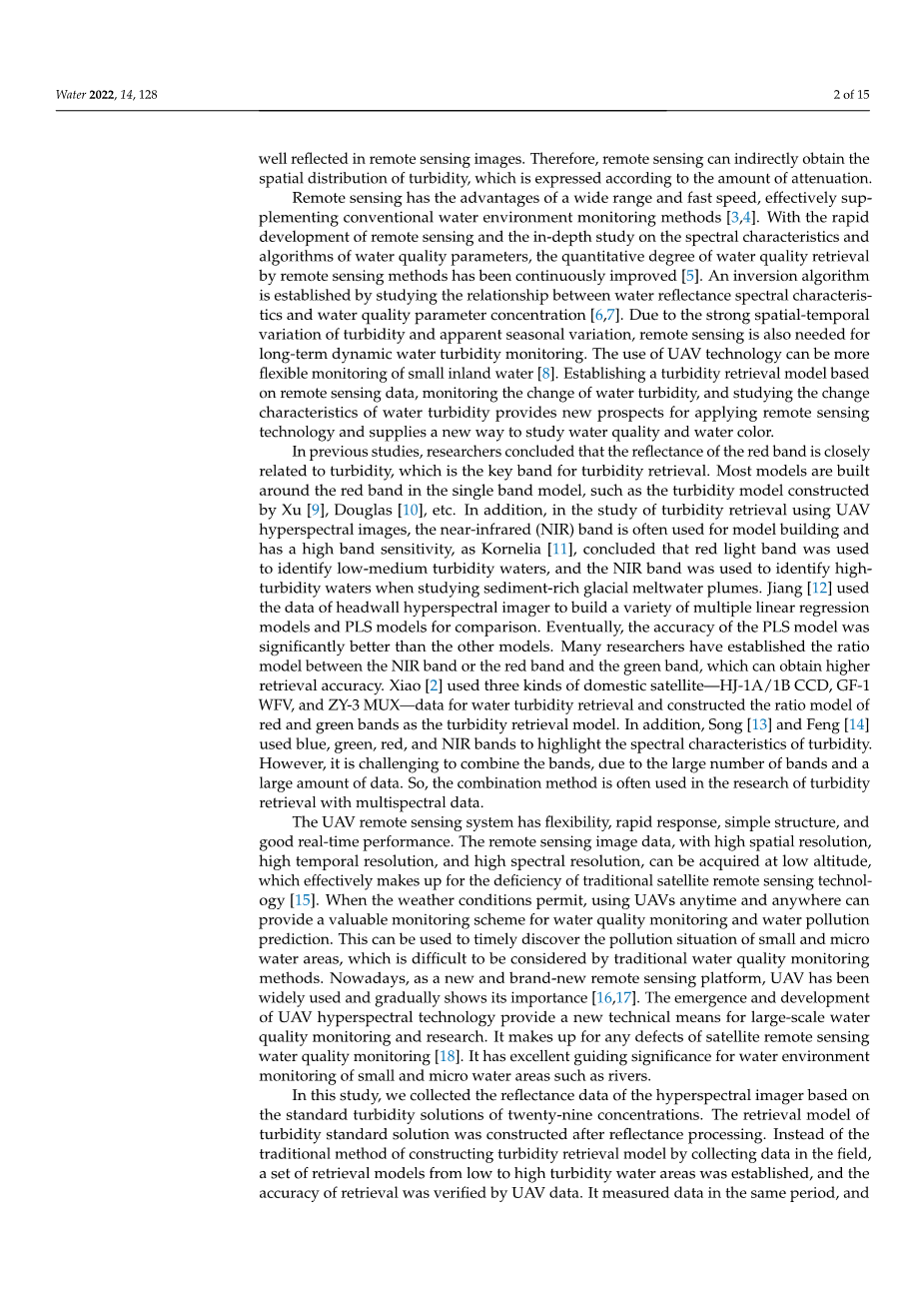 - 基于无人机高光谱遥感的水体浊度反演外文翻译资料