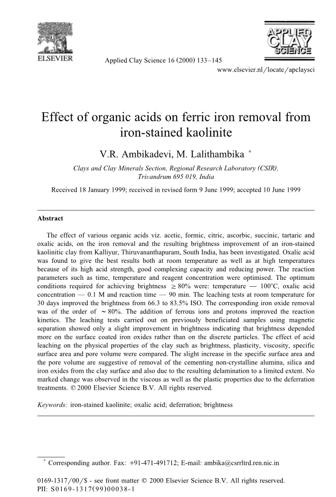 含铁高岭石中有机酸对三价铁的影响外文翻译资料