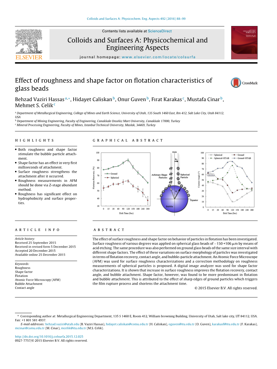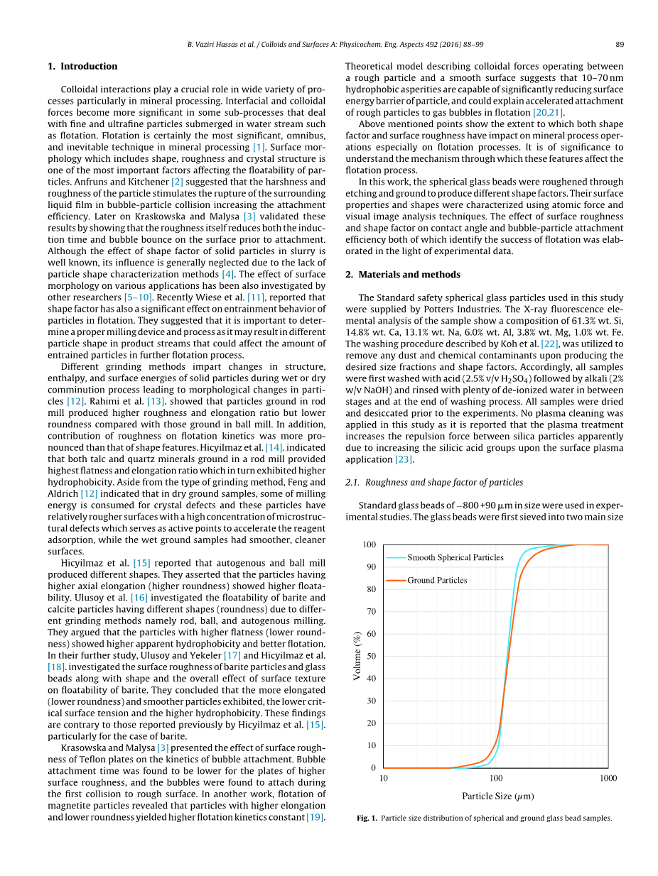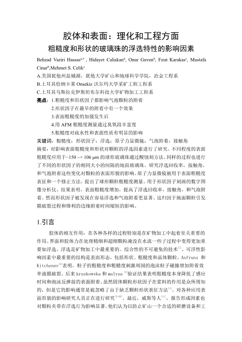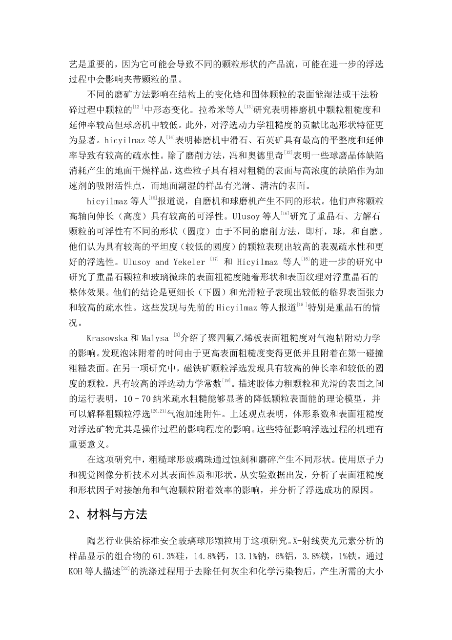 胶体和表面:理化和工程方面----粗糙度和形状的玻璃珠的浮选特性的影响因素外文翻译资料