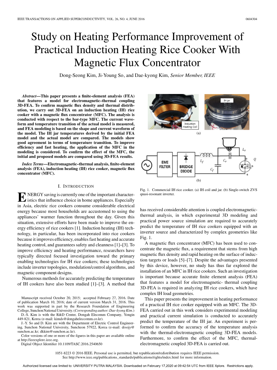 关键词:电磁热分析;有限元分析(FEA);感应加热(IH)电饭锅;磁通集中器(MFC)