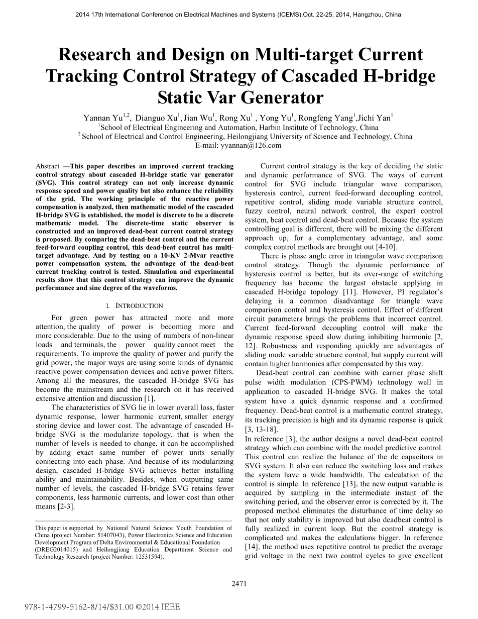 级联H桥静止无功发生器多目标电流跟踪控制策略的研究与设计外文翻译资料