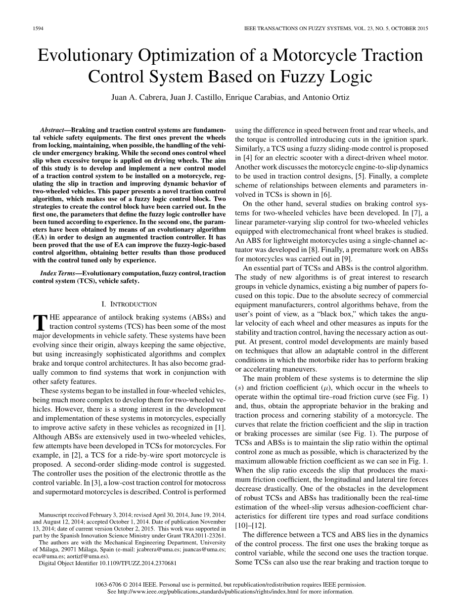 基于模糊逻辑的摩托车牵引力控制系统的进化优化