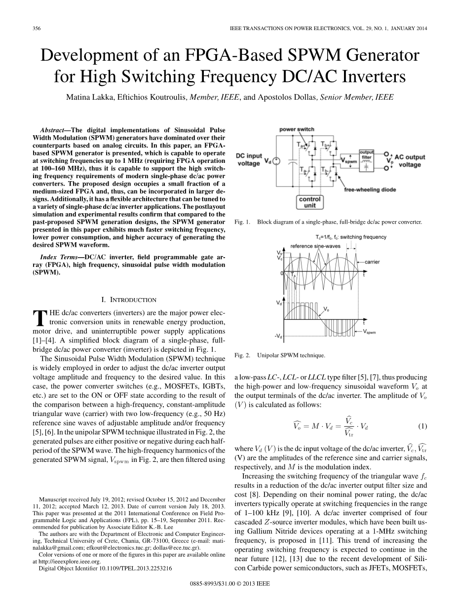 高开关频率DC/AC逆变器的基于FPGA的SPWM发生器的开发