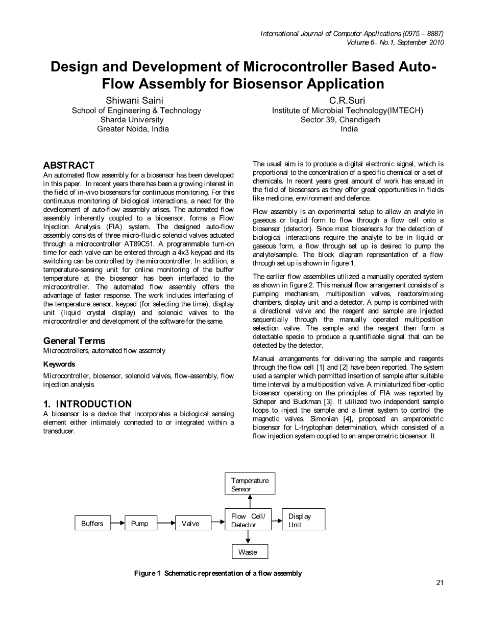 基于单片机的自动流程组件设计与开发在生物传感器上的应用外文翻译资料