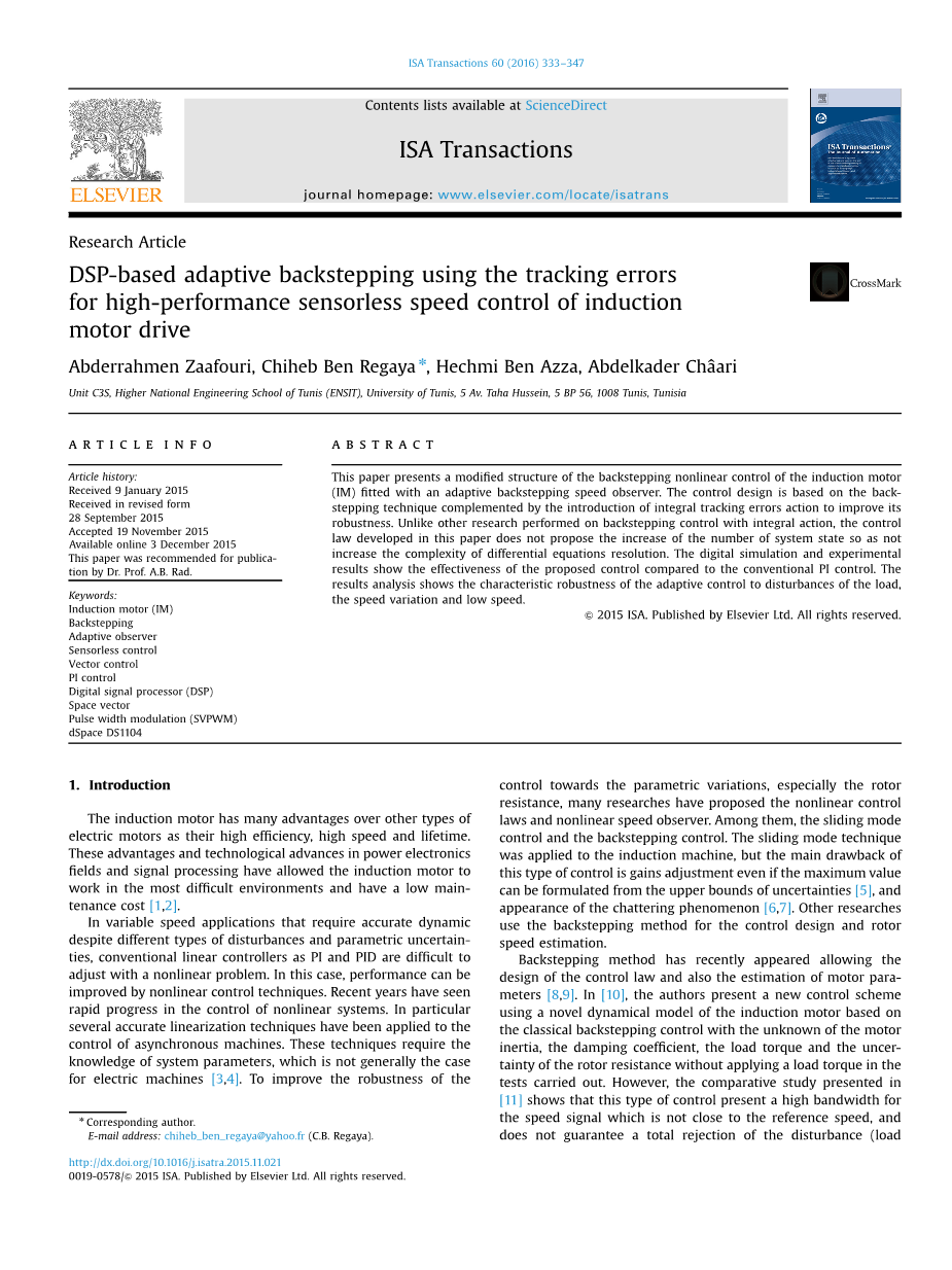 基于DSP的自适应反向步进使用跟踪误差高性能传感器的感应电机驱动的速度控制