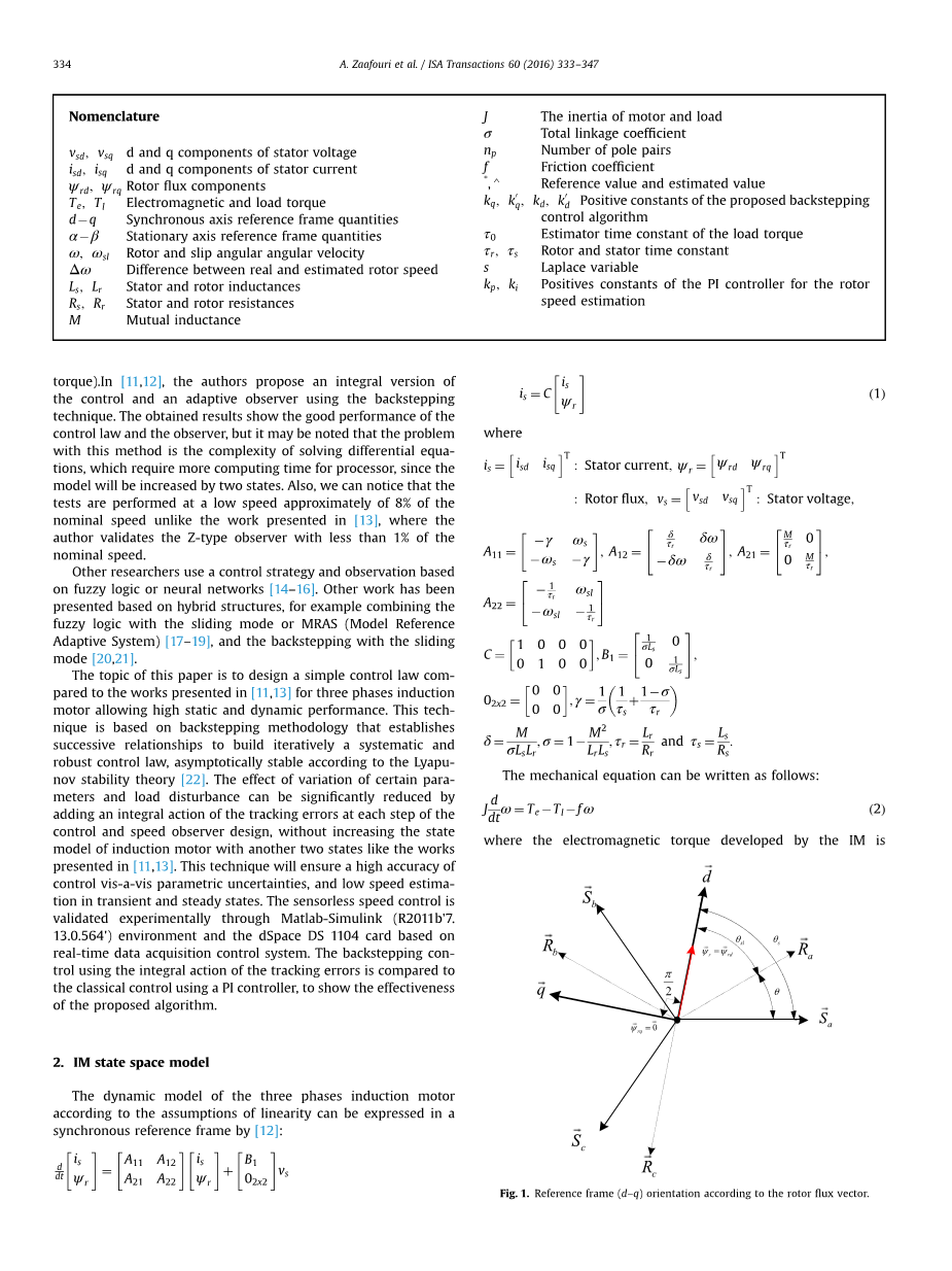 施加到感应电机,但这种类型的控制的主要缺点是增益调整,即使最大值可以从不确定因素上限被配制[5],和振铃现象外观[6,7]。其他研究使用反向步进法的控制设计和转子速度估计。