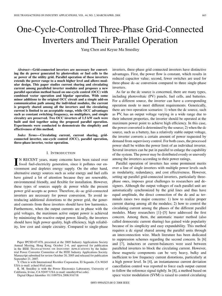 关键词—环流, 均流,并网逆变器, 单周期控制 (OCC),并联运行,三向逆变器,矢量运算。