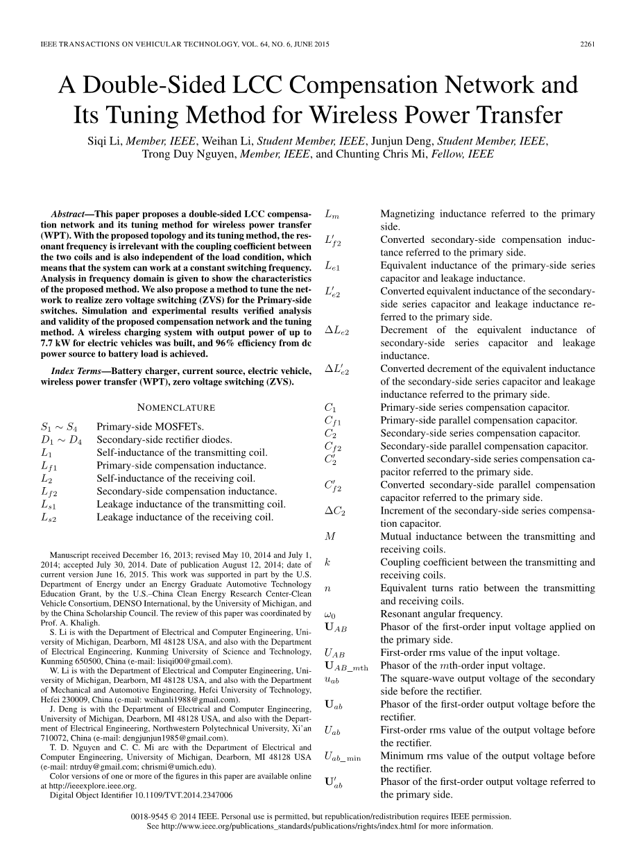这项工作是由美国能源部能源研究汽车技术在美国教育资助下支持的:中国清洁能源研究中心车辆联盟——国际电装,由密歇根大学,和由中国学术委员会。本文是由A. Khaligh.S. Li教授协调审查的 。李是美国迪尔伯恩,MI 48128密歇根大学电气和计算机工程系的,并与中国昆明理工大学电气工程学院,650500昆明,(电子邮件:lisiqi00 @ Gmail.com)有合作研究。