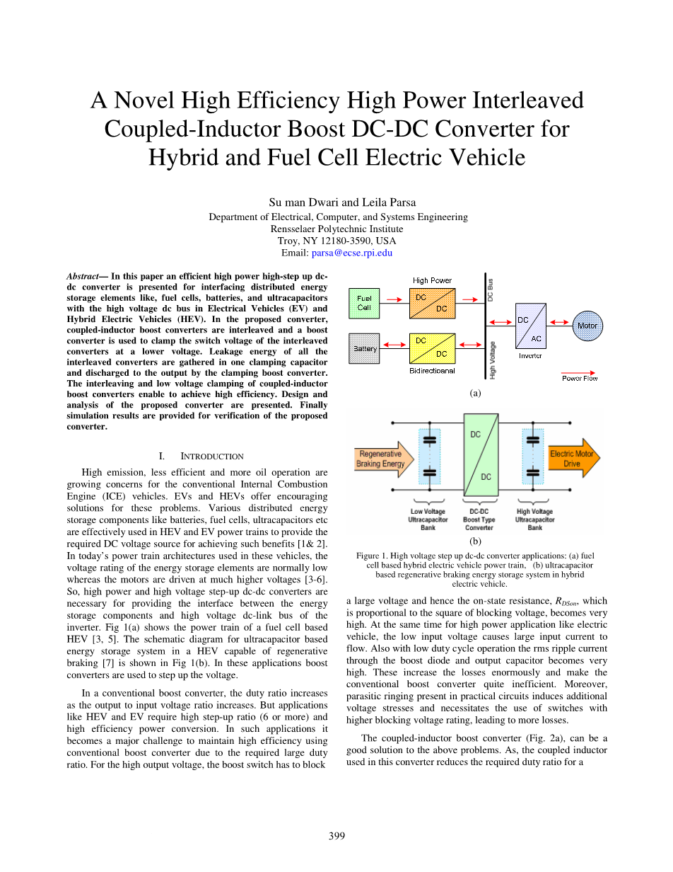 一种含有新型的高效率大功率交错耦合电感升压DC-DC转换器的混合动力和燃料电池电动汽车外文翻译资料