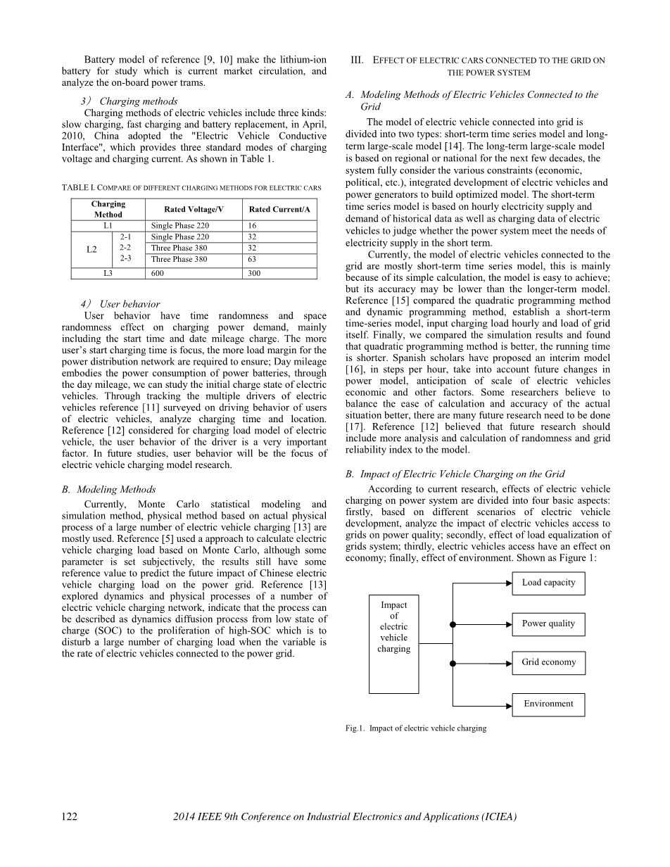 电动汽车(EV)产业在中国已经进入快速增长的阶段,因此未来规模化的电动汽车充电会对电网造成不可避免影响。这篇文章将会研究电动汽车充电负荷的主要影响因素及建模方法分析;本文将会就电动汽车一体化和对电网的影响,包括电网接入能力,电能质量及电力经济与环境等问题进行综述;此外,智能充电的优点和实现方法以及充电策略也在文中进行讨论。同时本文对V2G(车辆到电网)研究现状的操作也进行了总结。最后,作者指出了未解决的问题和未来可能研究领域.