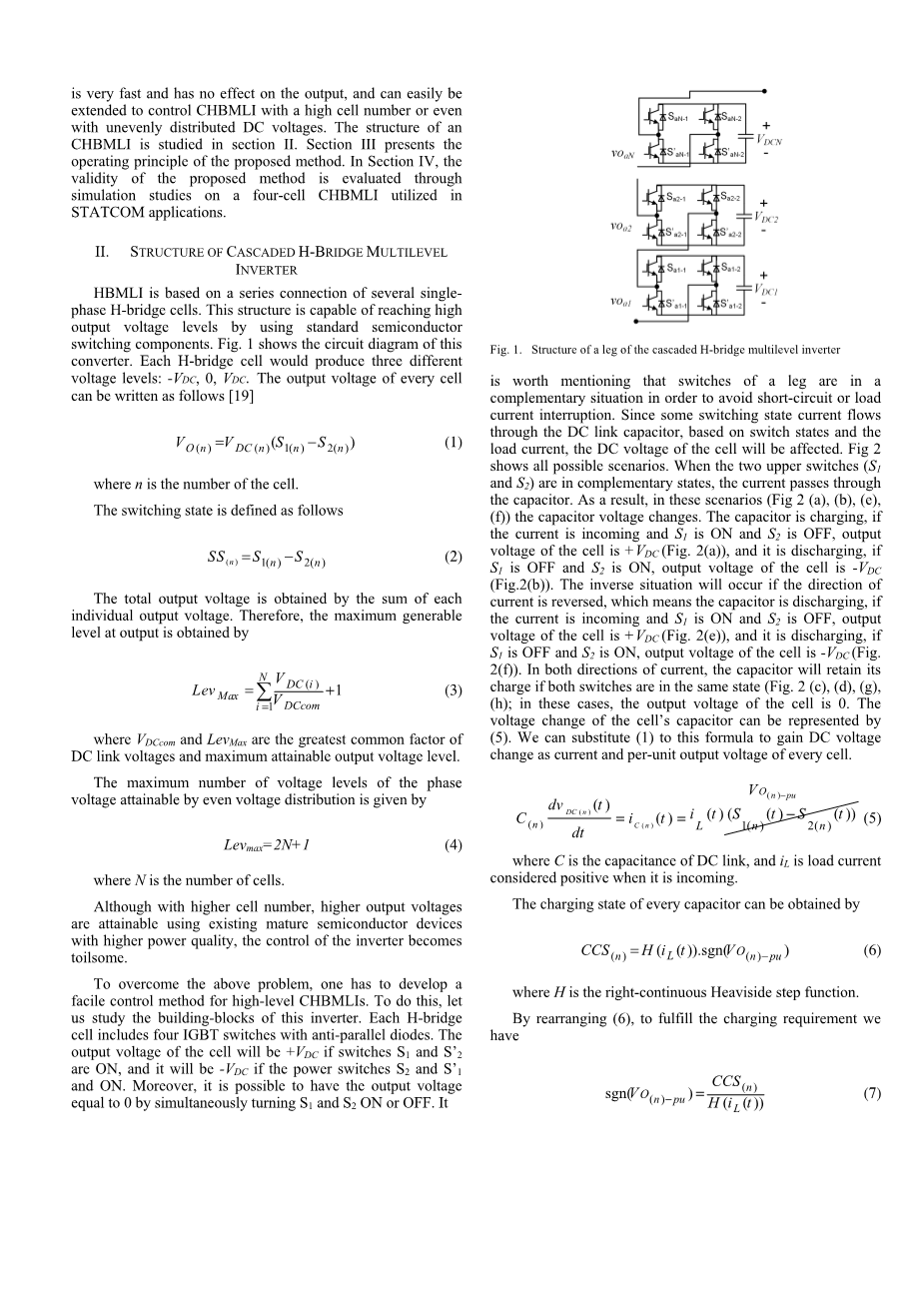 关键词:H桥级联多电平逆变器 直流电容电压平衡 静止同步补偿器