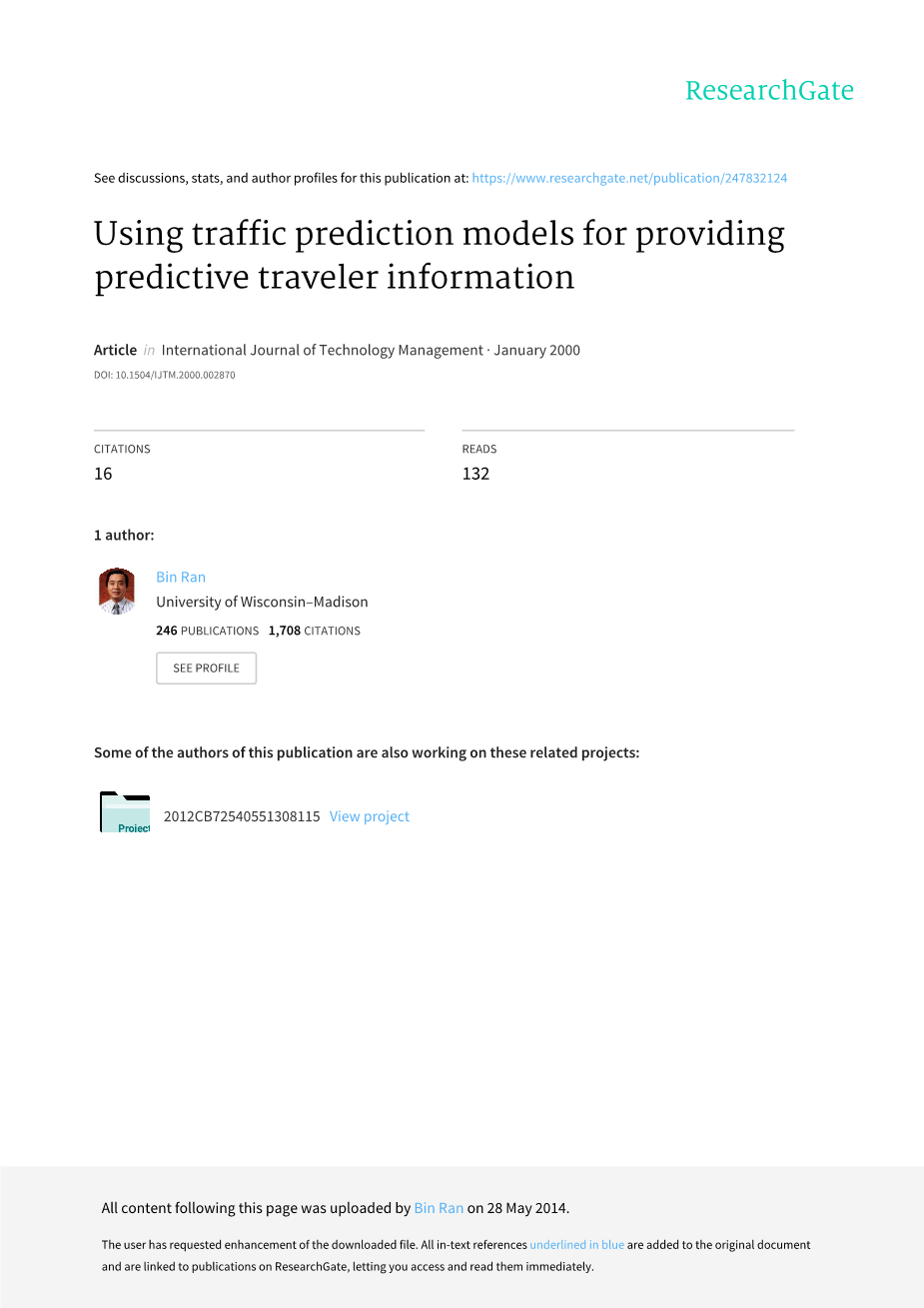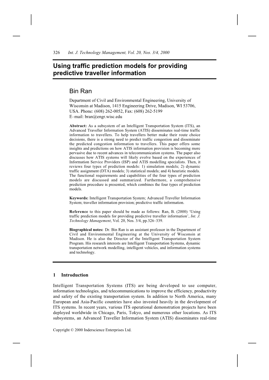 关键词: 智能交通系统; 高级旅客信息系统; 旅客信息提供; 预测交通信息。