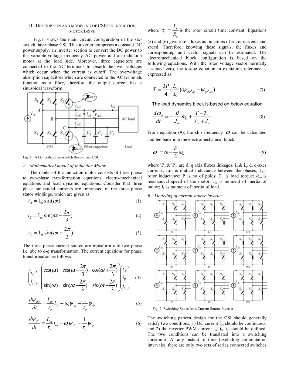 有几种调制技术应用于CSI,包括梯形脉宽调制(TPWM),选择性谐波消除(SHE)和空间矢量调制(SVM)。 与TPWM和SHE,SVM相比提供更多的控制灵活性和更好的动态性能。