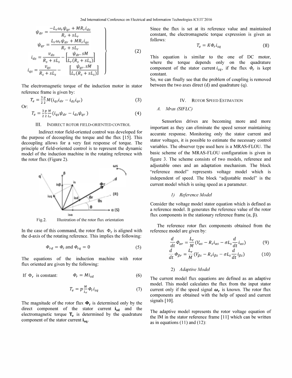 当前模型通量方程定义为自适应模型。 该模型仅在速度信号已知时才计算来自输入定子电流的通量。 转子磁通分量是在速度和电流信号的帮助下获得的[10]。
