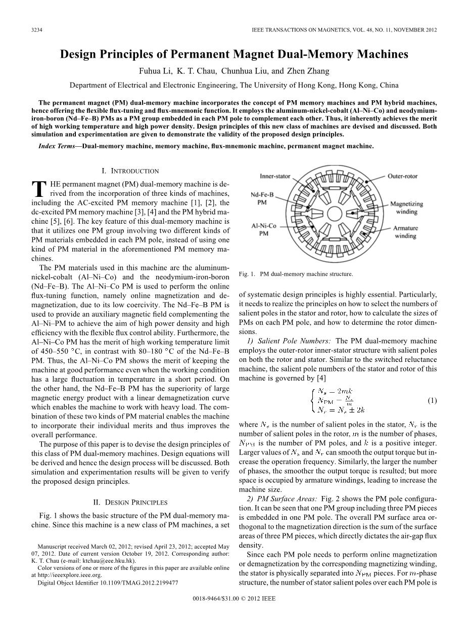 原 题 Design Principles of Permanent Magnet Dual-Memory Machines