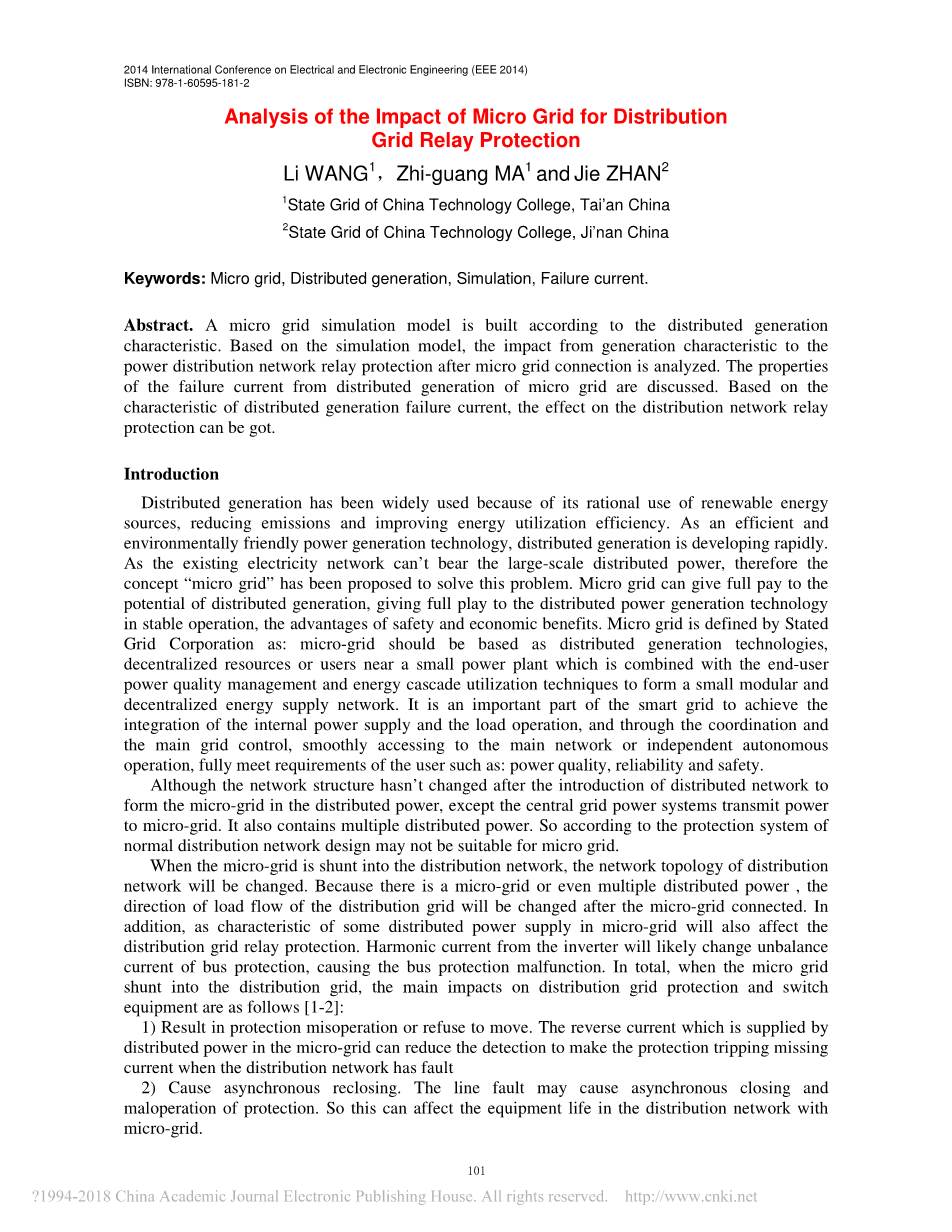 摘要: 根据分布式发电特性建立微电网仿真模型。 基于仿真模型分析了微电网连接后发电特性对配电网继电保护的影响。与此同时,讨论了微电网分布式发电故障电流的特性。基于分布式发电故障电流的特点,分析可以得到对配电网继电保护的影响。