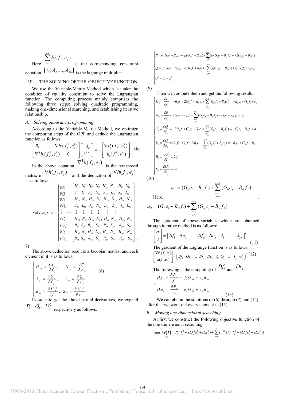 根据变尺度法,我们优化OPF的计算步骤和推导拉格朗日功能如下:
