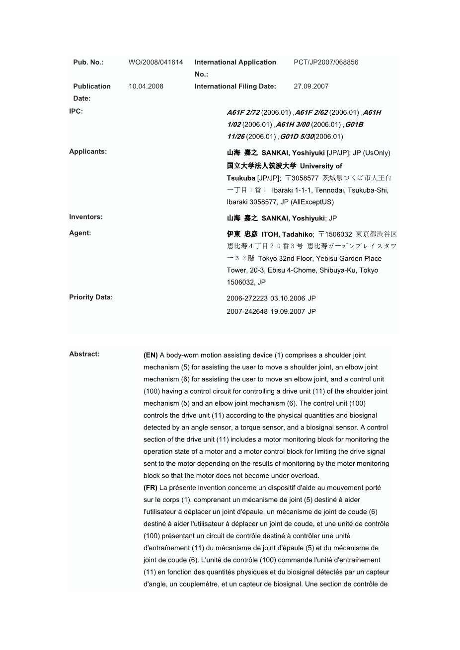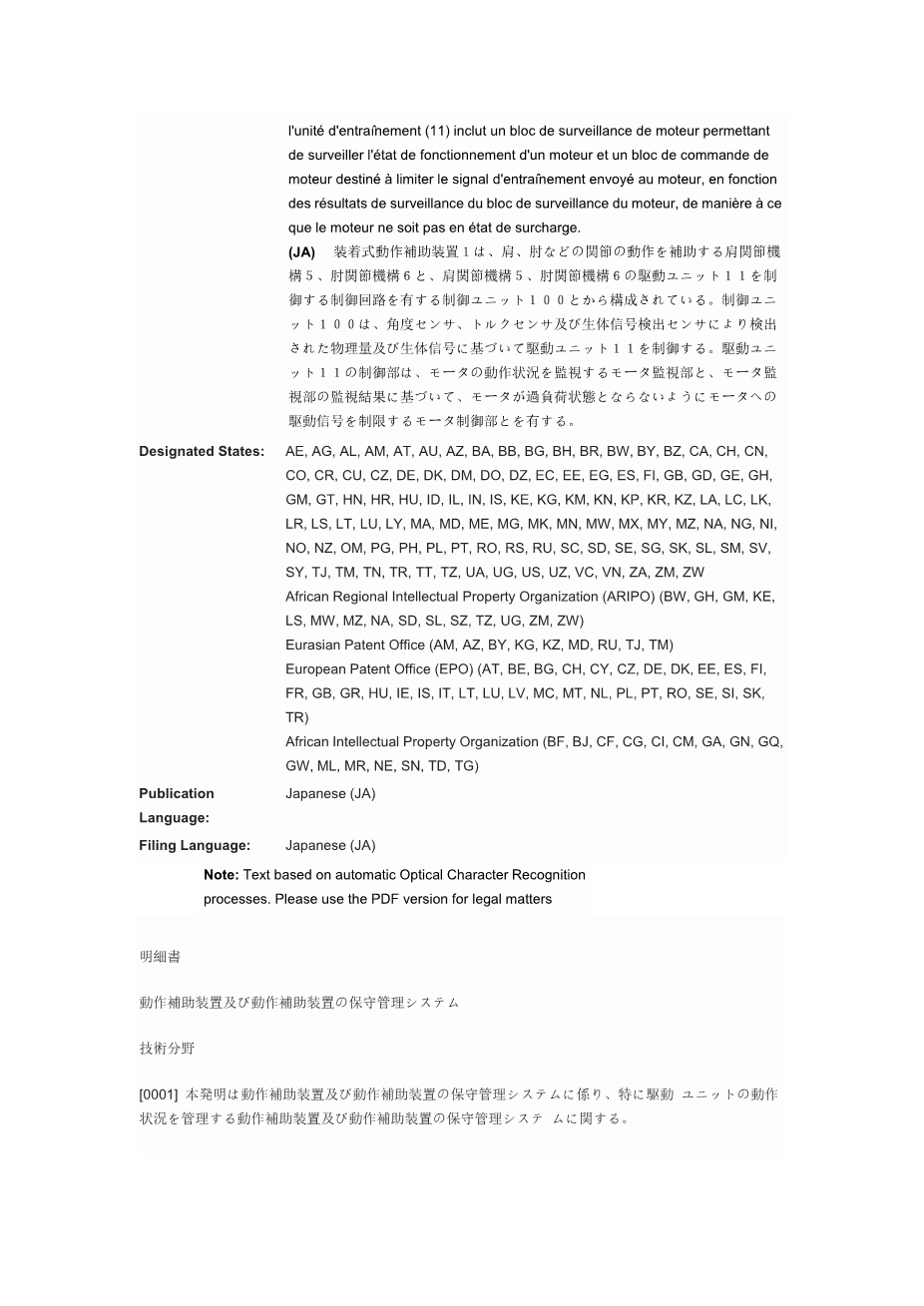 [0002]近年来,各种辅助装置的开发正在进行中,以辅助身体残疾人和老年人的操作(例如,参见专利文献1)。例如,在专利文献1中描述的安装型运动辅助装置中,设置可旋转地连接多个臂的接头,使一个臂相对于另一个臂旋转的致动器,以及臂的旋转角度。以及用于检测的角度传感器。