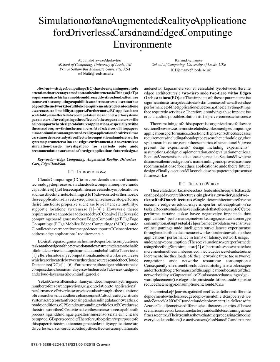 原 题 Simulation of an Augmented Reality Application for Driverless Cars in an Edge Computing Environment