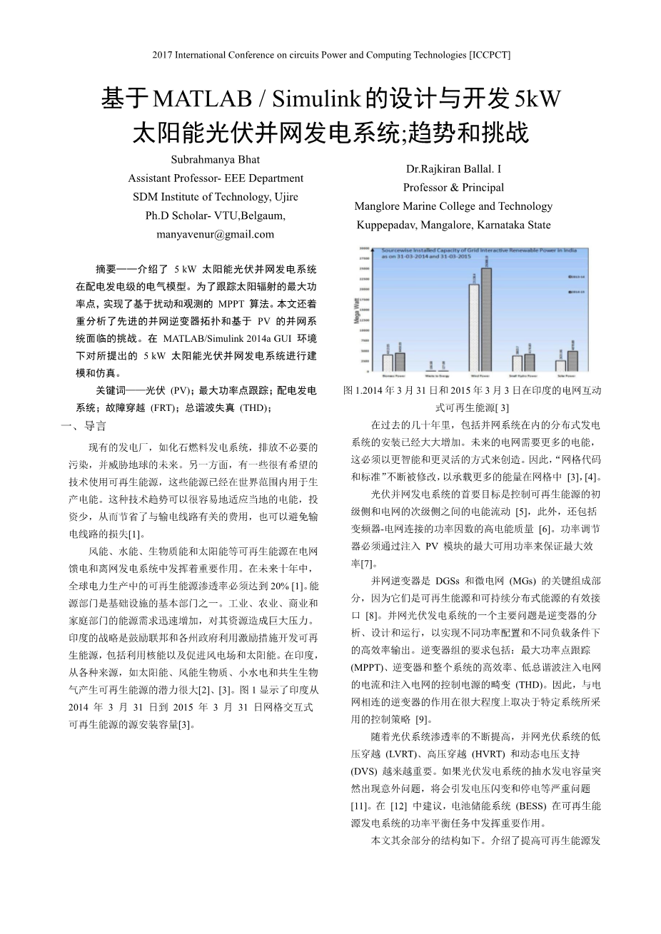 基于MATLAB / Simulink的设计与开发5kW 太阳能光伏并网发电系统;趋势和挑战外文翻译资料