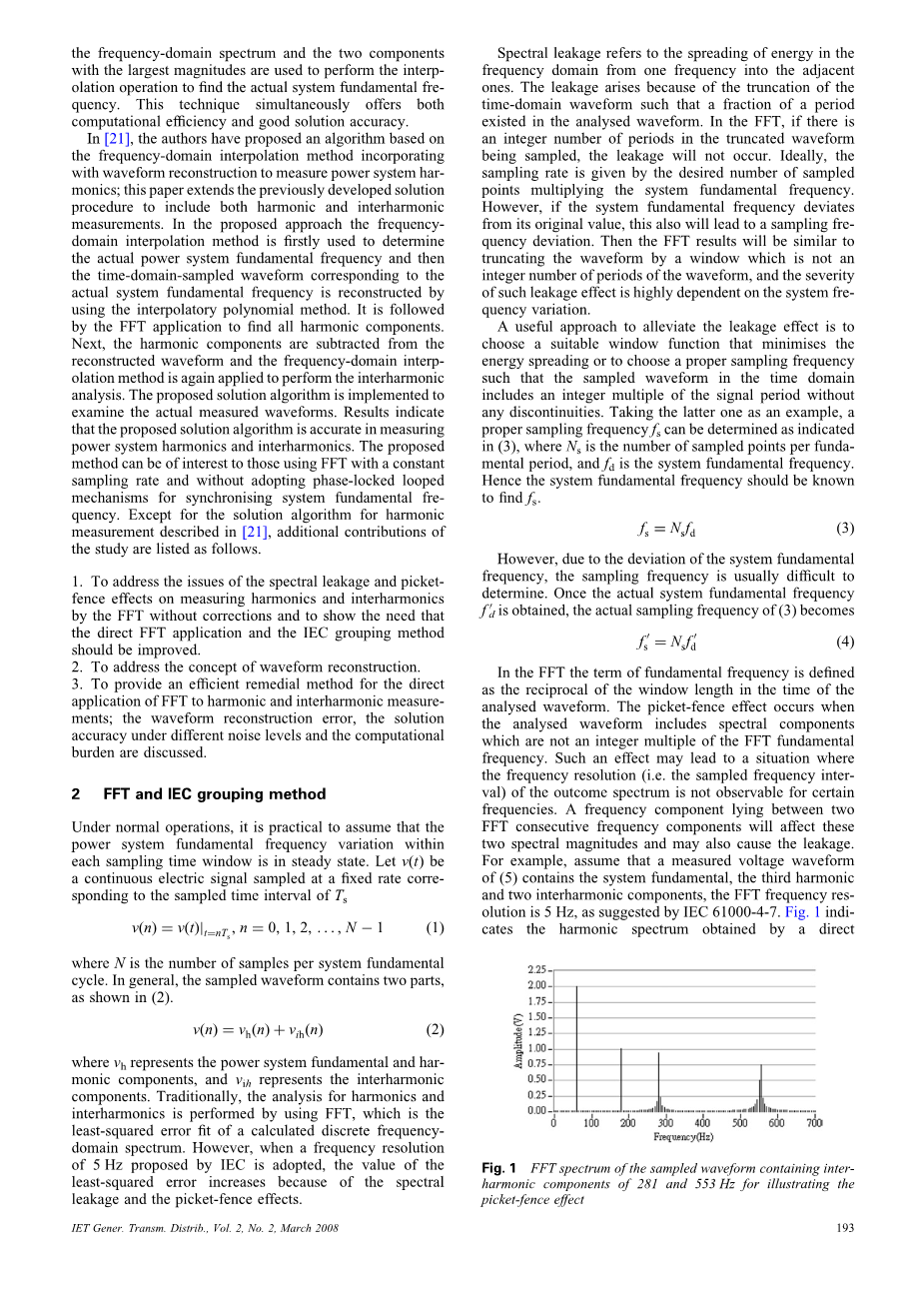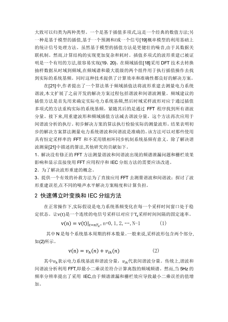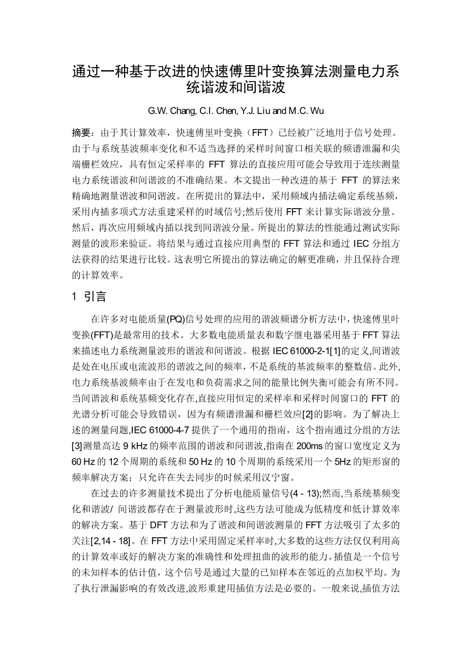 通过一种基于改进的快速傅里叶变换算法测量电力系统谐波和间谐波外文翻译资料