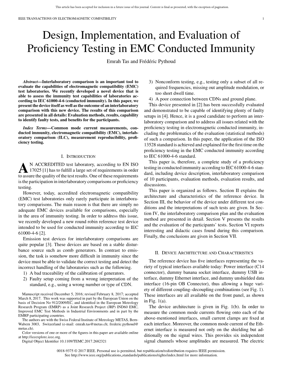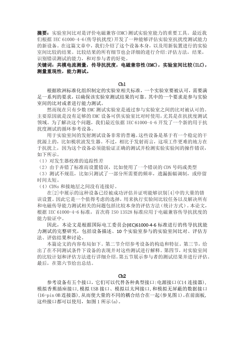 电磁兼容传导抗扰度能力测试的设计、实现和评估外文翻译资料