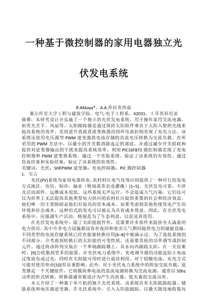 一种基于微控制器的家用电器独立光伏发电系统外文翻译资料