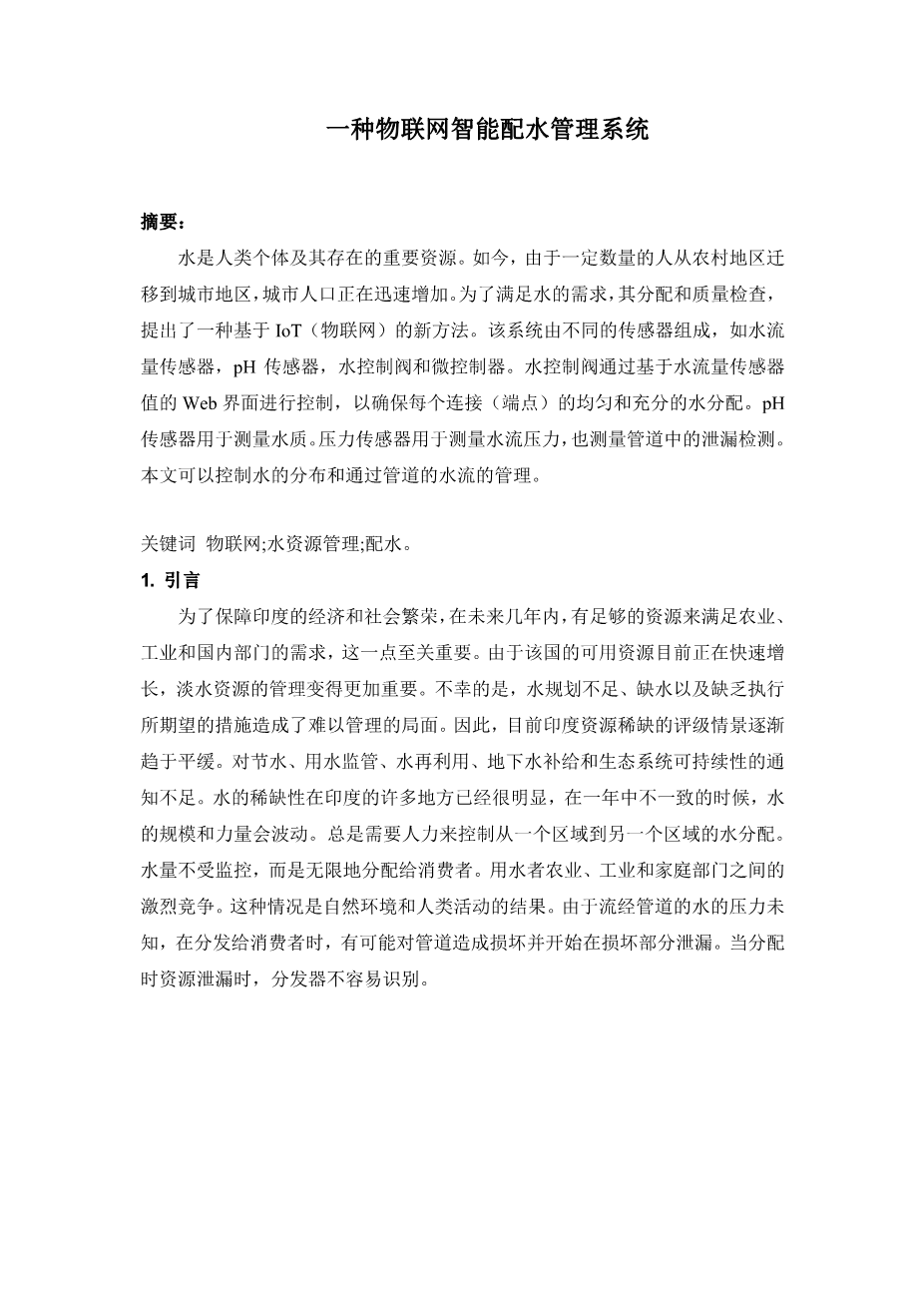一种物联网智能配水管理系统外文翻译资料