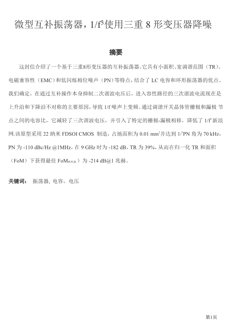 微型互补振荡器,1/f3使用三重8形变压器降噪外文翻译资料