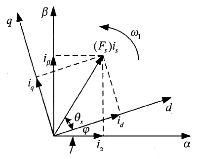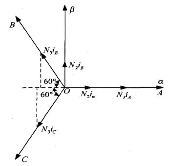 在坐标变换方面,在三相静止坐标系转换为两相静止坐标系中采用等功率变换,参考图如下: