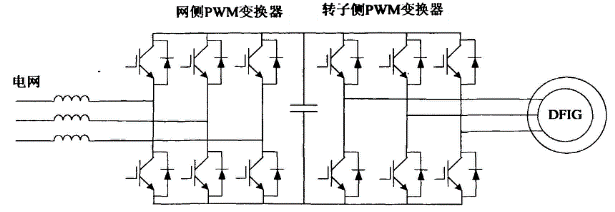 由于双馈风机的控制本质是控制其交流励磁变换器,而交流励磁变换器的基本结构如下: