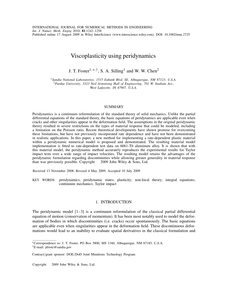 关键字:近场动力学方法;近场动力学方法态; 塑性;非局部理论;积分方程;连续介质力学;泰勒冲击。