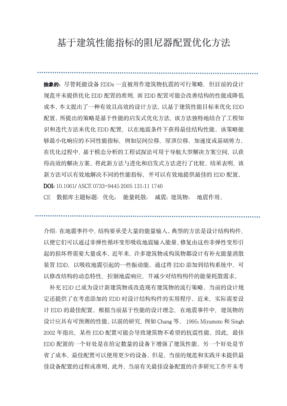 基于建筑性能指标的阻尼器配置优化方法外文翻译资料