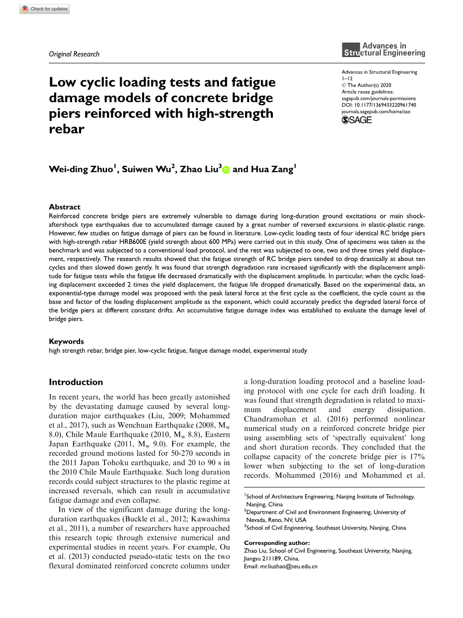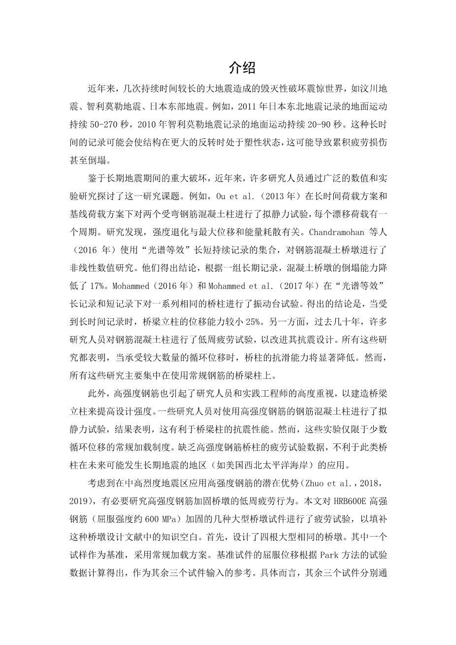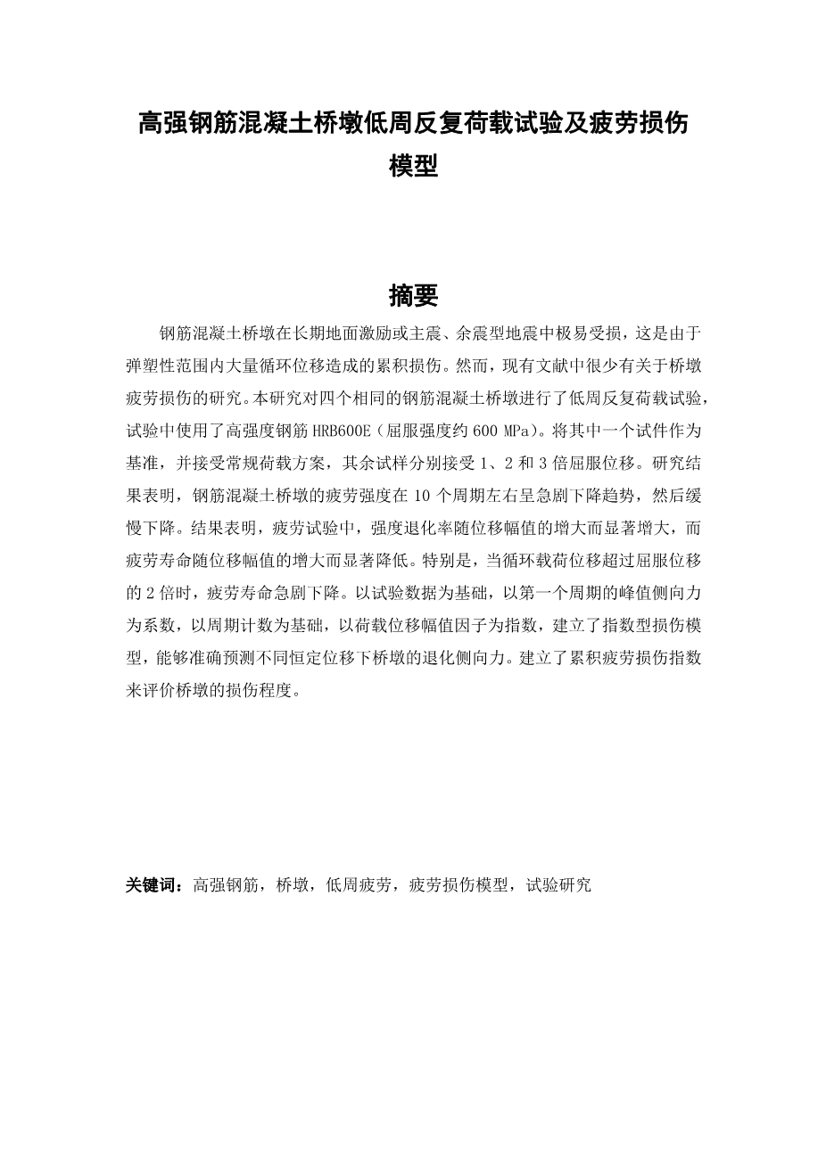 高强钢筋混凝土桥墩低周反复荷载试验及疲劳损伤模型外文翻译资料