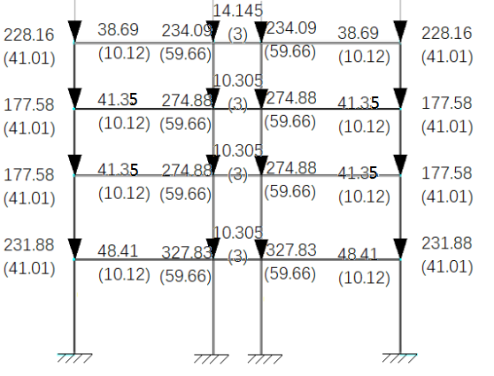 在将计算框架简化过程中,我们一般以单线条取代原构件,可以显示出各构件的形心轴所在位置,若如此做,梁的跨度可直接表示为梁边两柱的形心轴距离,柱的计算长度直接为每层的楼面和顶面的高差,而底层柱的长度还需加上基础深度和室内外高差。