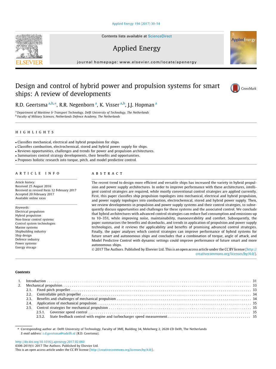 因为混合推进是电力和机械推进的结合,它可以受益于两者的优点,如第2节和第3节所讨论的。然而,为了实现这些好处,一个适当的设计(混合推进)是需要的,并且经常需要在这些要求之间进行权衡。该控制策略允许一个最佳的权衡,可以利用额外的控制程度,将电力从机械驱动器传输到电网,反之亦然。混合推进设计的主要挑战是平衡所有需求和设计控制策略之间的平衡。