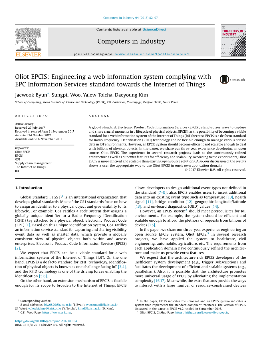 在论文中,我们分享了发展开源代码Oliot EPCIS的三年经验。在多个研究项目中,我们将该系统应用于医疗、土木工程、汽车、农业等领域。来自每个应用领域的需求不断地改进了体系结构,并使我们提供了额外的功能。