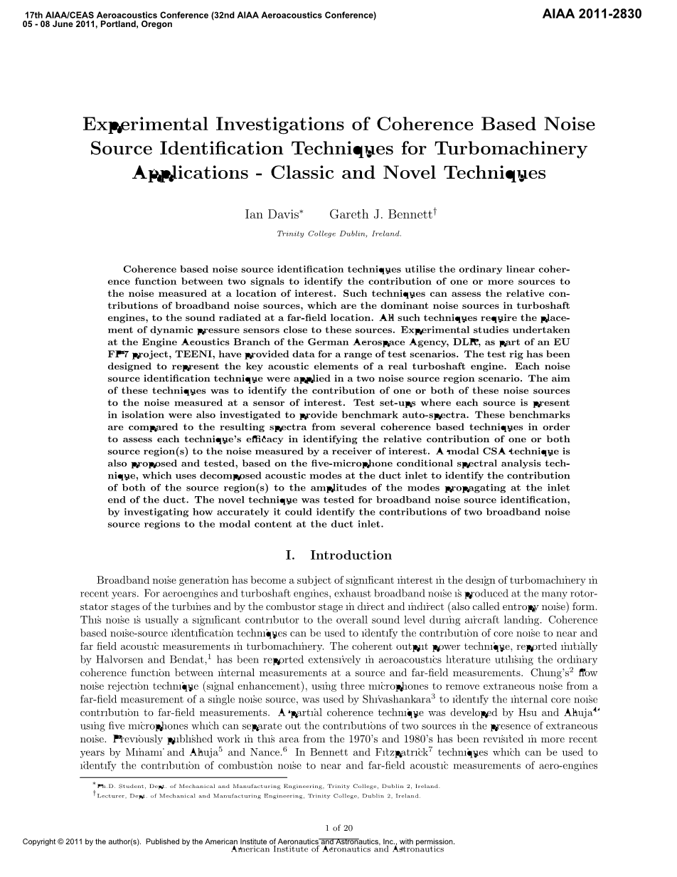 摘要:基于相干性的噪声源识别技术利用两个信号之间的普通线性相干函数来识别一个或多个噪声源对所测噪声的贡献,这种技术可以评估涡轴发动机主要噪声源的宽带噪声源对远场辐射声的相对贡献,所有这些技术都要求在靠近这些源的地方放置动态压力传感器。作为欧盟 FP7项目的一部分,德国航空航天局(DLR)发动机声学分部在TEENI进行的实验研究为一系列测试场景提供了数据。试验台是为了模拟实际涡轴发动机的关键声学元件而设计的,将各种噪声源识别技术应用于一个双噪声源区场景中,这些技术的目的是确定一个或两个噪声源对感兴趣的传感器测量的噪声的贡献。测试设置对其中每个来源存在的隔离也进行了调查,以提供基准自动光谱。将这些基准与几种基于相干性技术的结果光谱进行比较,以评估每种技术在确定一个或两个源区域对感兴趣的接收者测量的噪声的相对贡献方面的效力。基于五传声器条件谱分析技术提出并测试了一种模态CSA技术,该技术利用管道入口处分解的声学模态来识别源区和源区对管道入口处传播的模态振幅的贡献,通过对宽带噪声源识别方法的研究,验证了该方法能够准确地识别两个宽带噪声源区域对管道进口模态含量的贡献。